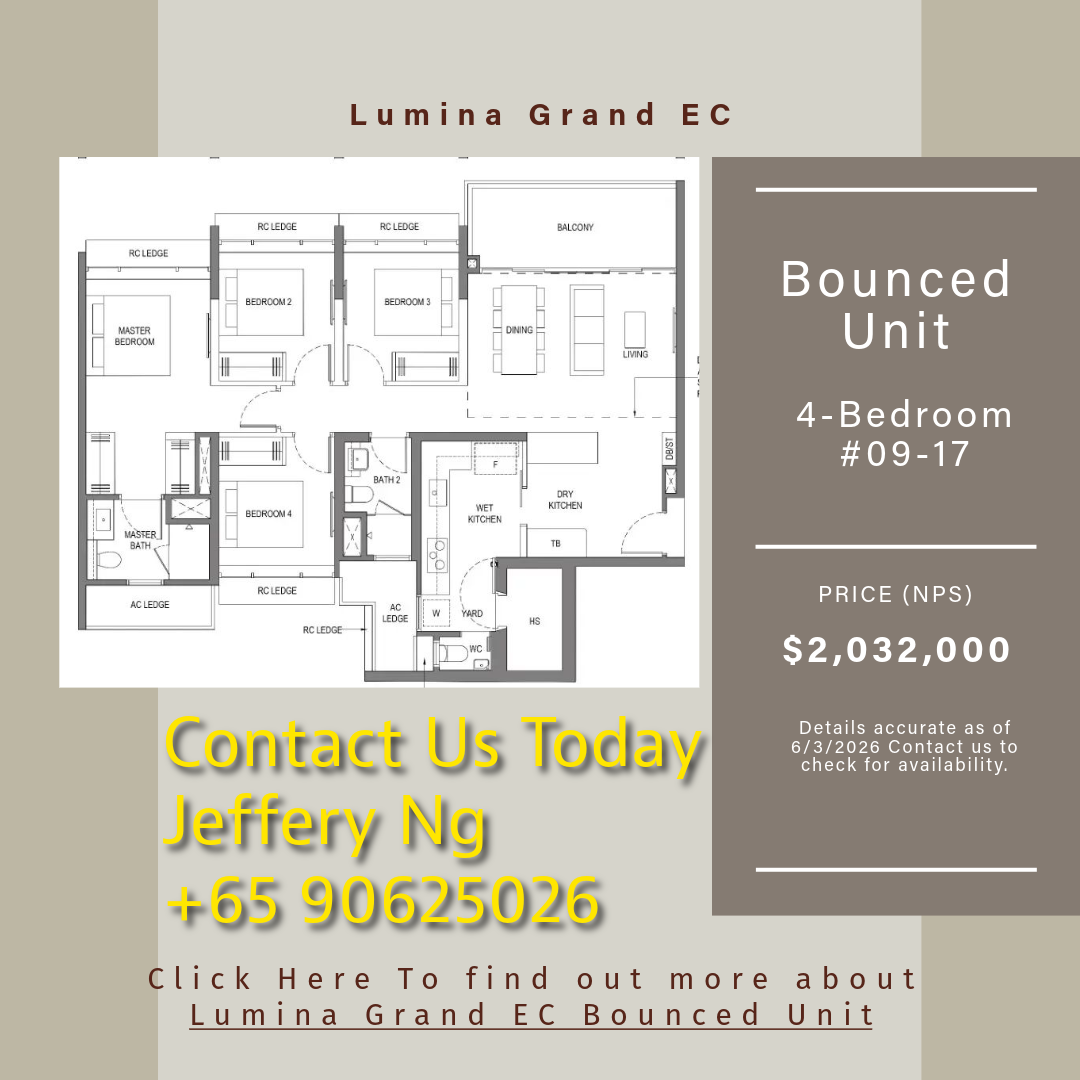 A Lumina Grand EC Bounced Unit refers to an Executive Condominium apartment that was previously booked but returned to the developer, City Developments Limited (CDL) before TOP/ Key Collection. These rare opportunities emerge when buyers fail to secure financing within 21 days, cancel during the cooling-off period, or encounter eligibility issues—creating unexpected availability in this sold-out Bukit Batok development.